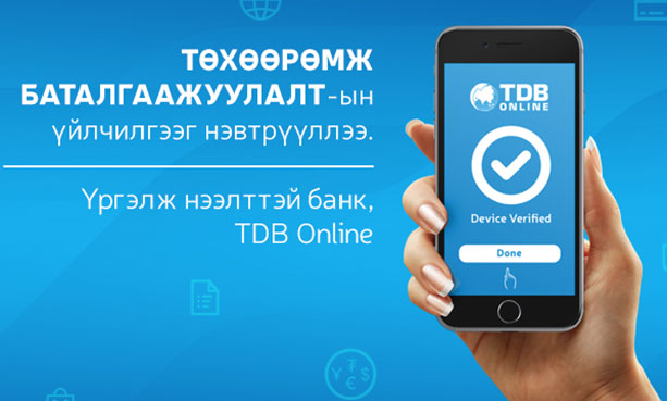 Худалдаа, хөгжлийн банк таны санхүүгийн аюулгүй байдлыг хамгаалах, ТиДиБи Онлайн үйлчилгээний нууцлалыг сайжруулах зорилгоор “Төхөөрөмж баталгаажуулалт”-ын үйлчилгээг нэвтрүүллээ.